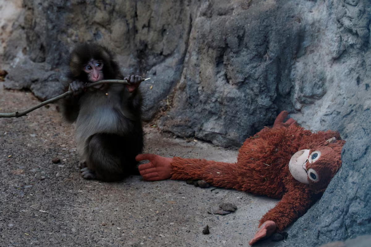 Japanese baby macaques typically cling to their mothers to build muscle strength and for a sense of security, so Punch needed a swift intervention, zookeeper Kosuke Shikano said.