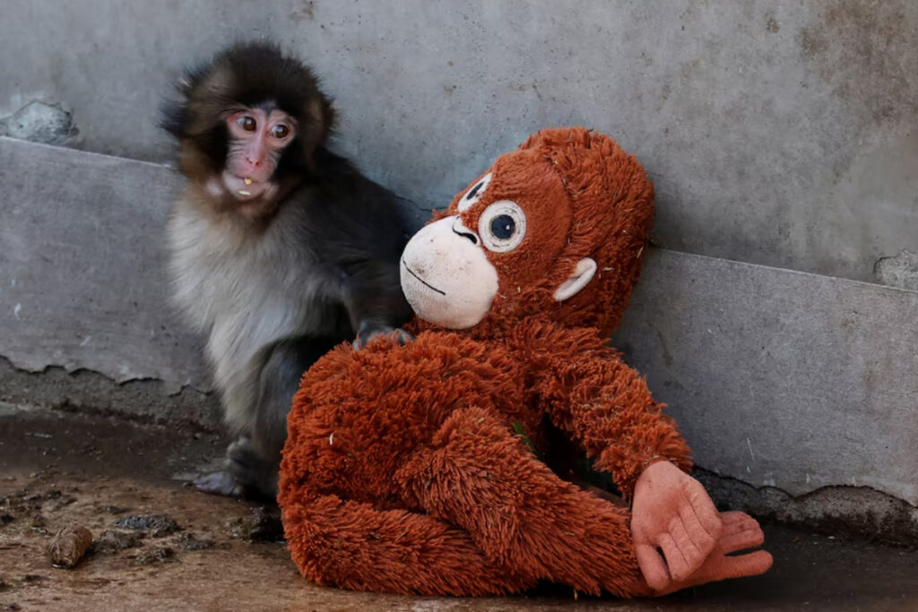 The baby macaque Punch’s mother abandoned him when he was born seven months ago at the Ichikawa City Zoo outside Japan and when an onlooker noticed and alerted zookeepers, they swung into action.