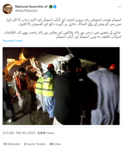 National Assembly Speaker Raja Pervaiz Ashraf and Deputy Speaker Zahid Akram Durrani also expressed deep sorrow over the tragic accident.