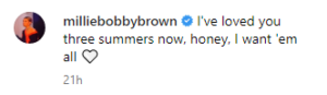 The 19 years old Stranger Things star took to Instagram to announce her engagement with her boyfriend Jake Bongiovi, the son of rock legend Jon Bon Jovi.