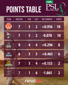 Islamabad, have secured back-to-back victories since the remainders began, while Karachi has only played one match and has lost that. They made a strong comeback in the last two matches after losing their first game against Lahore Qalandars.